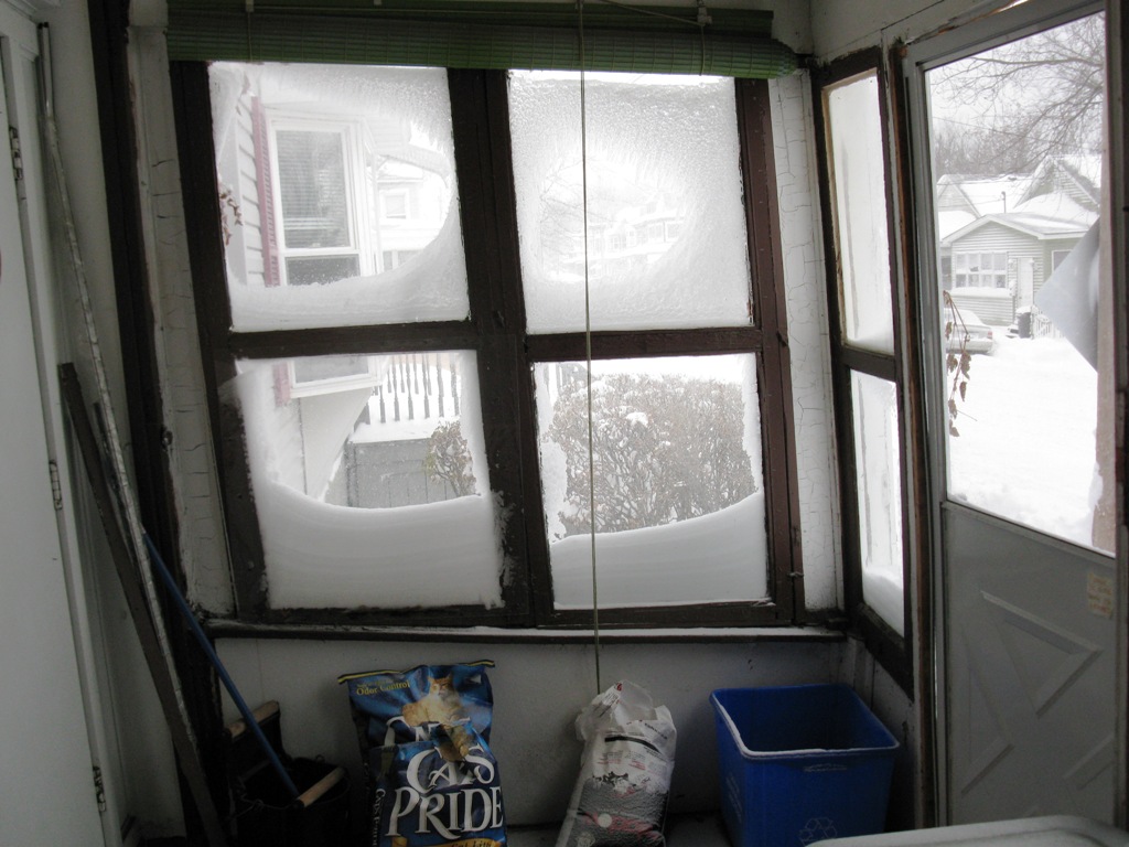 From the relative safety of my front porch I could see the snow blowing and accumulating. The winds reached 80 miles an hour that day, at times blowing all the snow sideways and feeling like a sandblasting on my face: