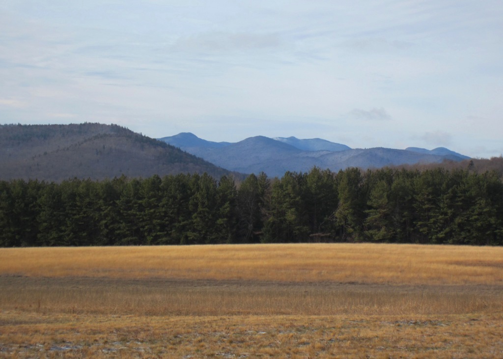 We were on our way up to the farm for the weekend and had made it all the way to Route 30 north of Paul Smiths. I stopped to snap a photo of Barnam Pond, whose water's come within a foot or two of the highway's edge, and the lovely snow-dusted mountains in the background. I noticed, for the first time, a dirt lane leading into the forest across the road from Barnam Pond: