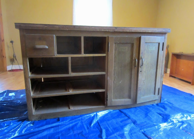 Then I carried in the drawers, all except one which appeared to be locked (I have no key), and set it on a tarp in the living room. I planned to clean and paint it some bright color. Some day, when I have lots of free time: