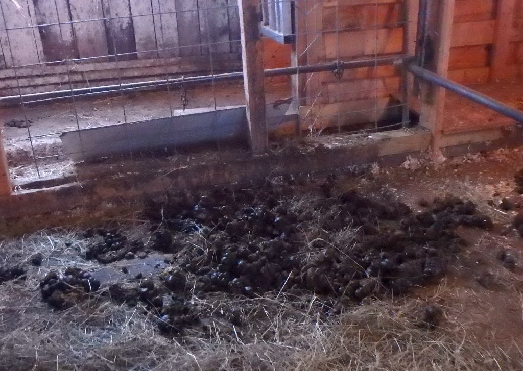 This is their bathroom inside the barn. At least they go to one spot when they have to poop. They used to come in from outdoors to poop, but they seem to have gotten over that. Now they just use their bathroom when they're already in the barn anyway: