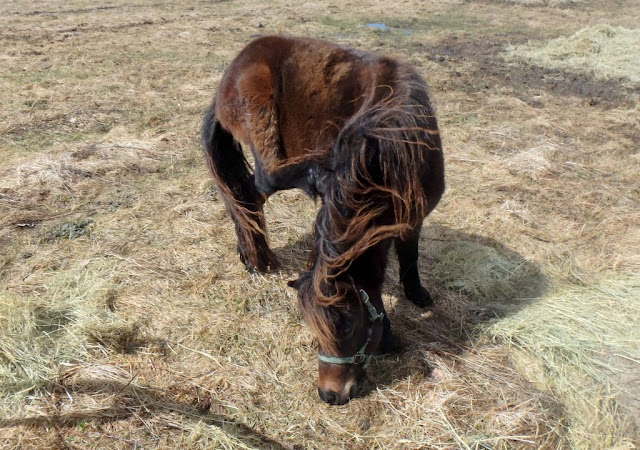 But with warming weather, I moved it out into the field. Even though there is no green grass to eat yet, the cows' hay consumption went down, presumably because they now need less energy to keep warm. I liked this photo so much that I put it on the farm website: